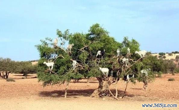 阿甘果,它的果实看起来像橄榄,但比橄榄小。阿甘果果肉不错食用。每到老到季节,摩洛哥山羊便爬上阿甘树吃果肉,果核掉下来被放牧东谈主捡到榨油,这也成为摩洛哥一大奇特征象。
