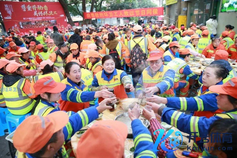 12月22日中午,沙坪坝区天星桥隔邻的一家羊肉汤锅店门前,600多名环卫工围坐在餐桌前九游体育官网登录入口,享用走头无路的羊肉汤锅。宴客的是寰球优秀农民工、重庆好东谈主、沙坪坝区东谈主大代表张世文。