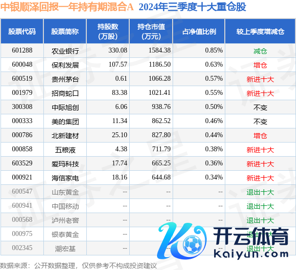 中银顺泽请教一年抓有期搀杂A为搀杂型-偏债基金,凭据最新一期基金季报显现,该基金财富成立:股票占净值比16.07%,债券占净值比113.87%,现款占净值比3.87%。基金十大重仓股如下: